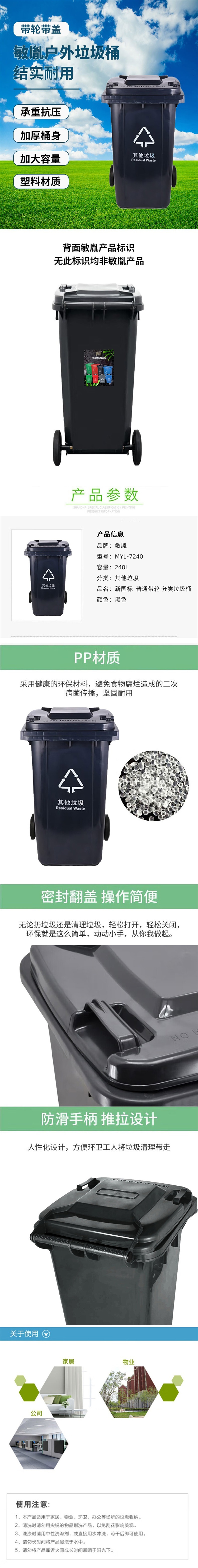 - 商品名称:敏胤 MYL-7240 其他垃圾 新国标 240L 普通带轮 分类垃圾桶 (计价单位:个) 黑色