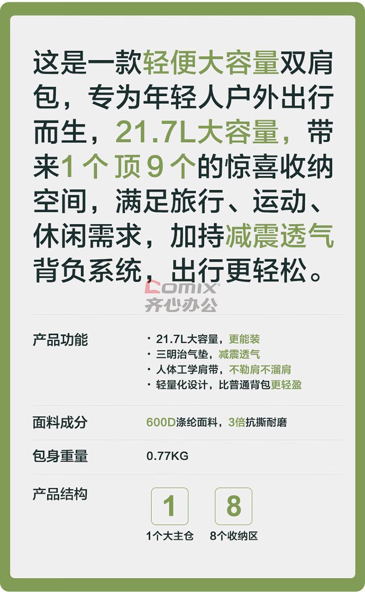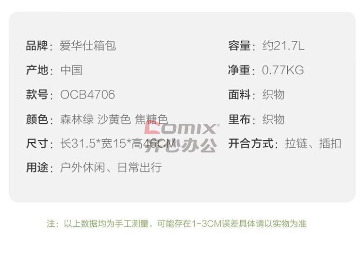 商品名称:爱华仕(OIWAS)书包透气大容量减负双肩包高中工装风简约高颜值防泼水背包OCB4706蓝色