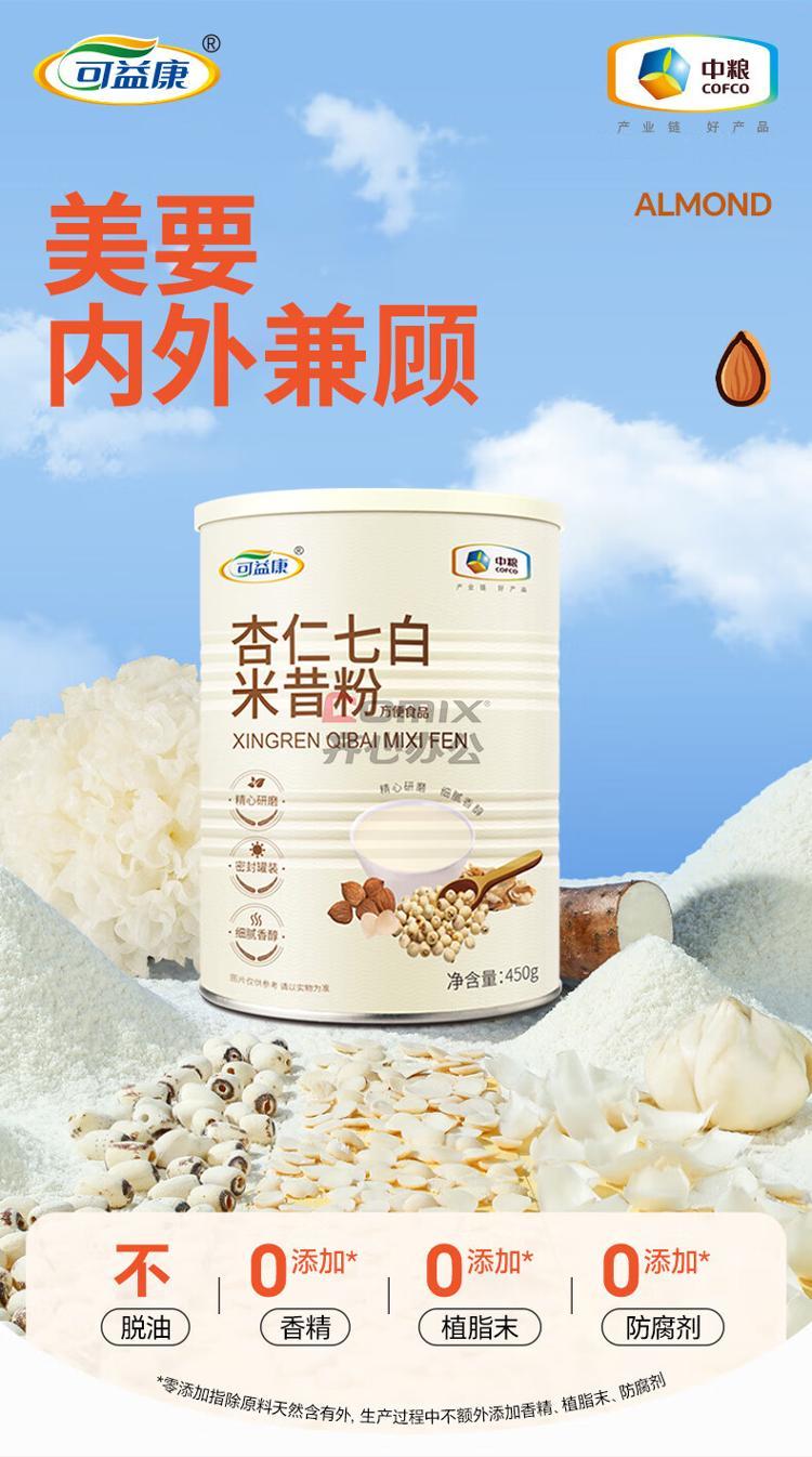 商品名称:可益康 中粮 杏仁七白饮粉 500g 单位:罐