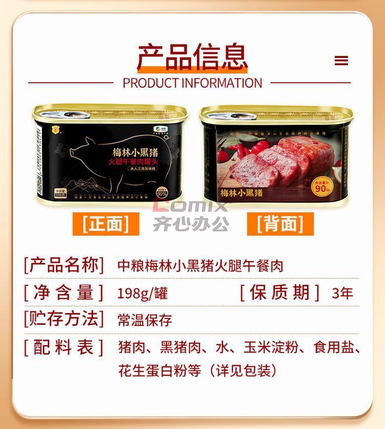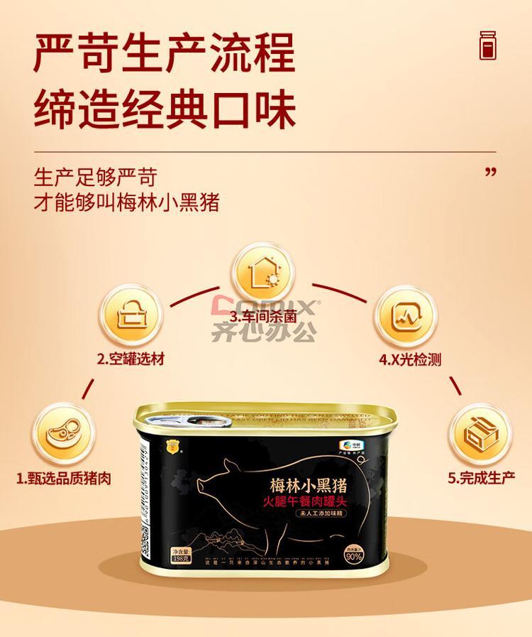 商品名称:梅林 小黑猪火腿肉罐头198g 单位:罐