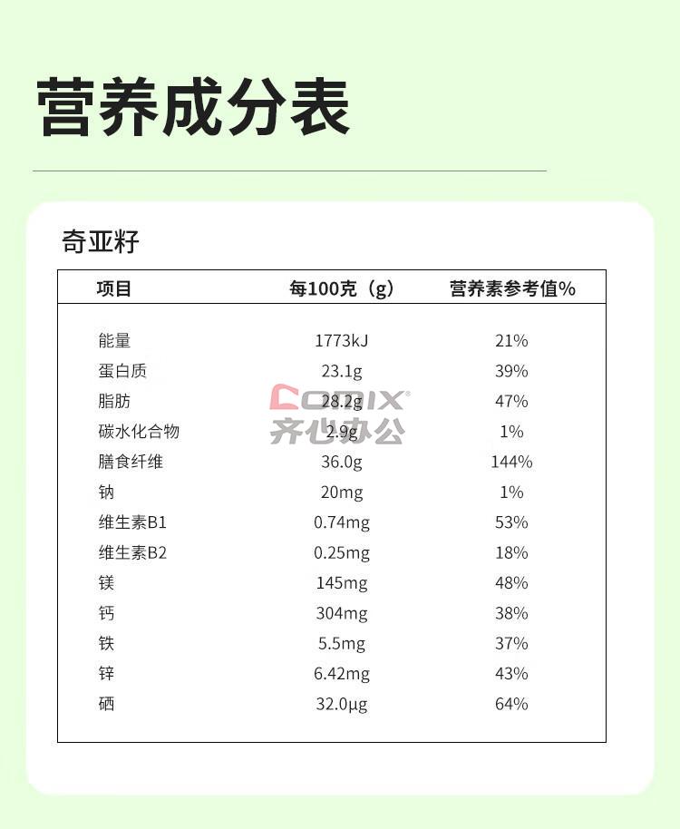 商品名称:可益康 中粮 奇亚籽 400g 单位:罐