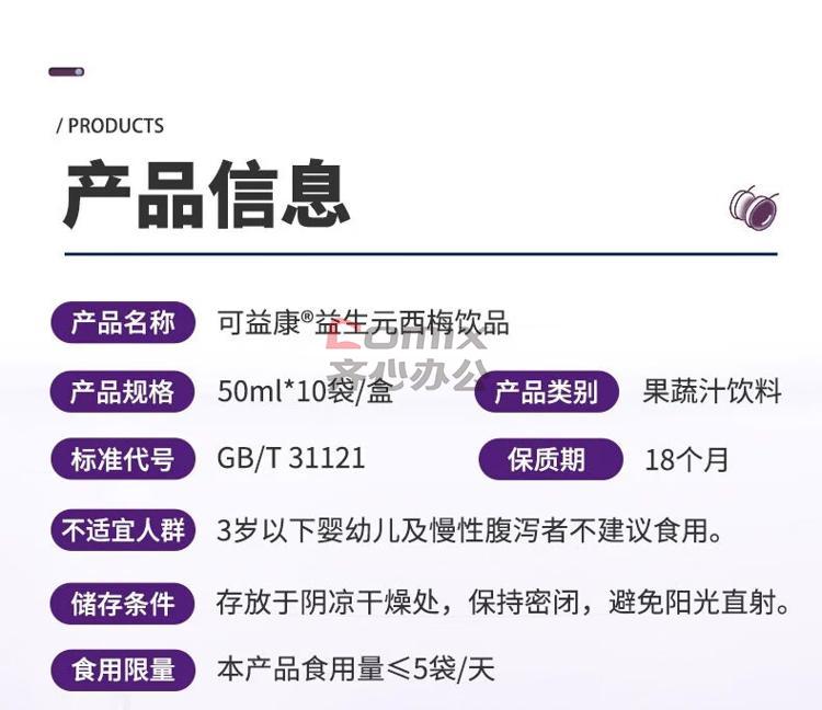 商品名称:可益康 益生元西梅汁 50ml*10 单位:盒