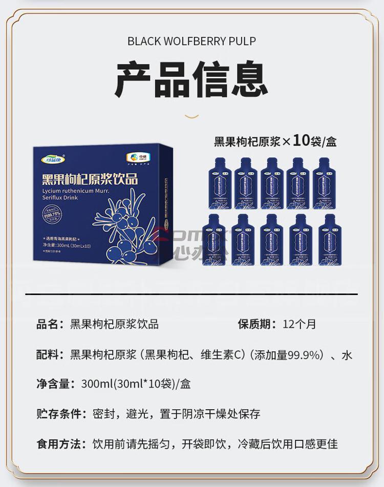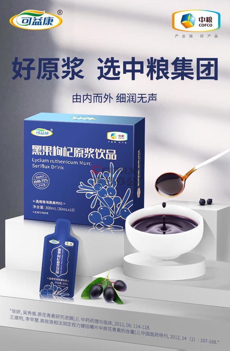 商品名称:可益康 中粮 黑枸杞原浆 30ml*10 单位:盒