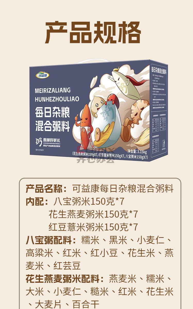 商品名称:可益康 每日杂粮粥 3150g 单位:盒