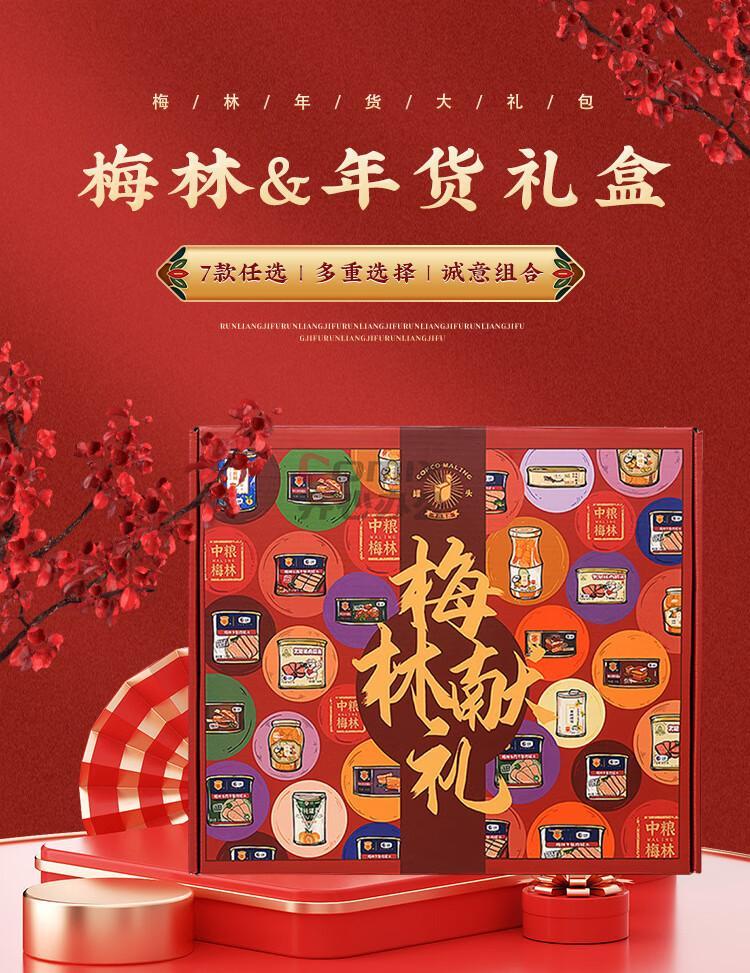 商品名称:梅林 丰富多彩午餐肉礼盒 2029g 单位:盒