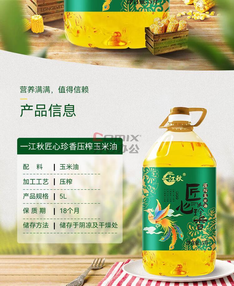 商品名称:一江秋 匠心珍香压榨玉米油 5L 单位:瓶
