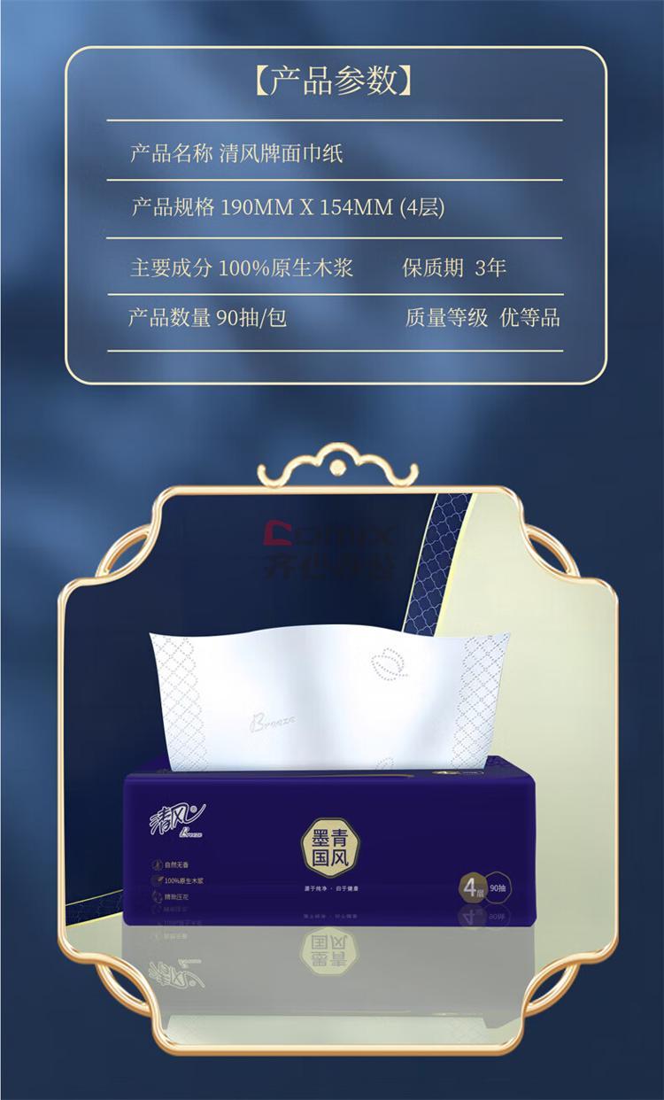 清风 AR40MJH 抽纸 4层90抽 4包抽纸 单位:提