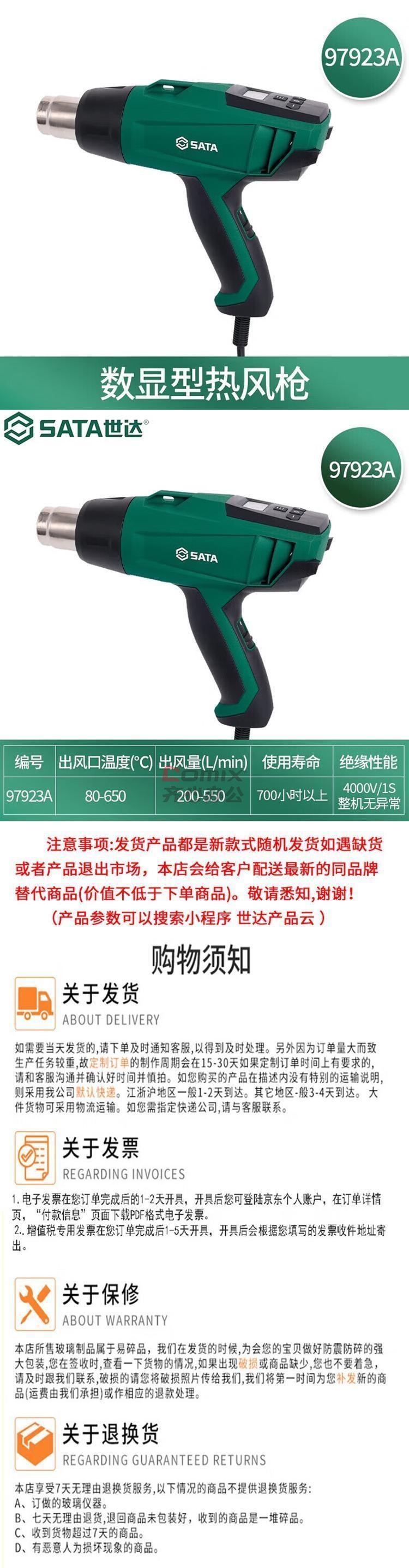 商品名称:世达 97921A-97923A 普通型调温型数显型热风枪 97923A数显型热风枪 单位:套