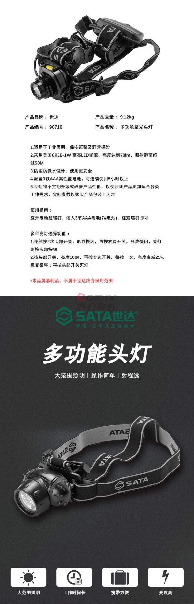 商品名称:世达 90710 多功能聚光头灯 单位:个