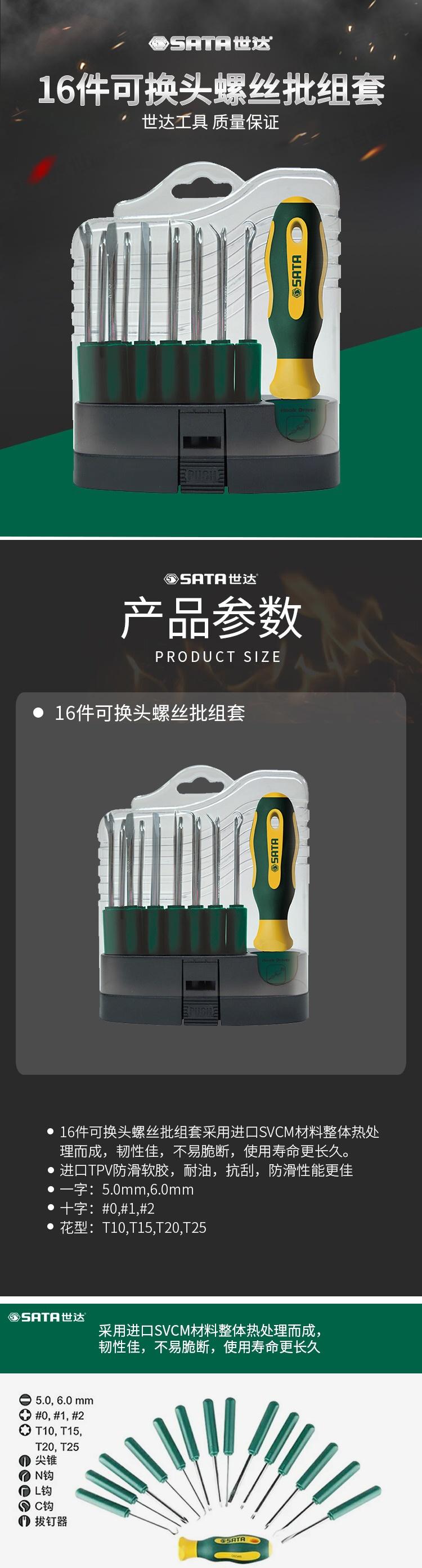 商品名称:世达 09346 螺丝批组套工具 16件 可换头 不绝缘 单位:套