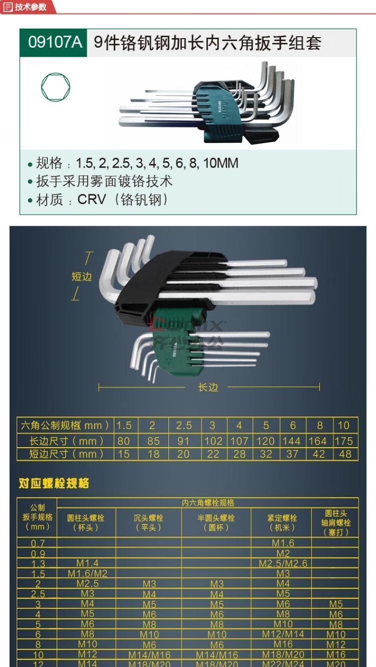 商品名称:世达(SATA) 09107A 9件/套 内六角扳手 (计价单位:套)