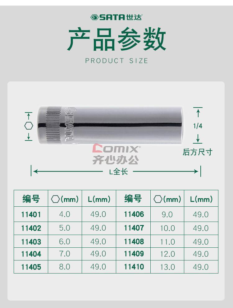 商品名称:世达(SATA) 11409 12mm 加长6角套筒 (计价单位:个)