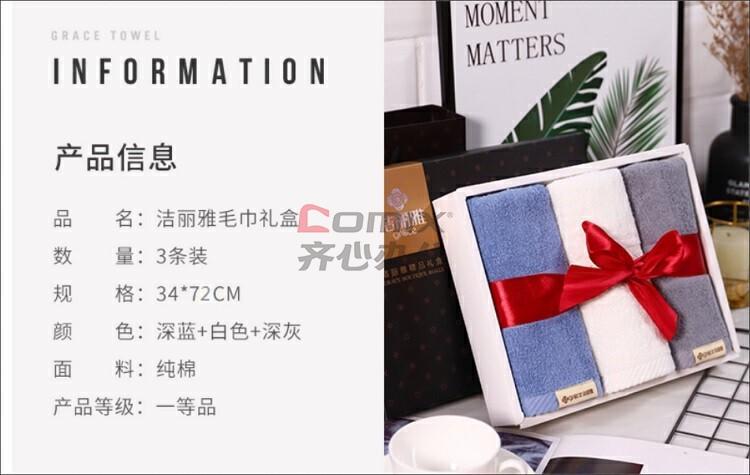洁丽雅(Grace) W0355 34*72cm 100g 3条礼盒套装/无手提袋 毛巾 (计价单位:盒)