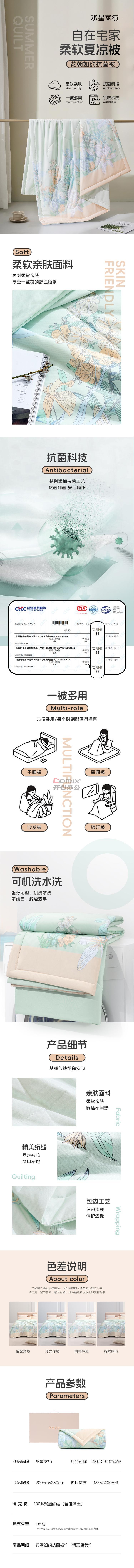 商品名称:水星家纺 200cm×230 琴歌细语抗菌夏被 单位:套