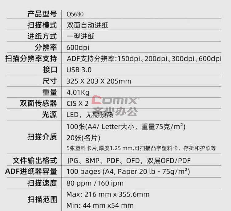 商品名称:紫光(UNIS) Q5680 扫描仪 Q5680(80页160面/分)支持国产