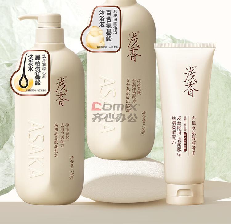 浅香(扁柏750g+沐浴露750g+700g顺滑膏)植物氨基酸洗护沐三套装 单位:组