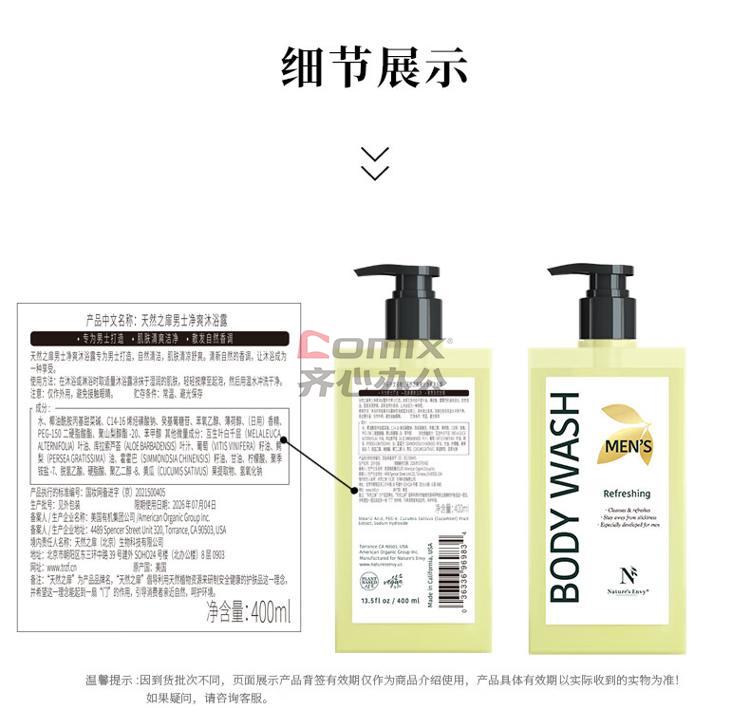 商品名称:天然之扉 400ml 男士净爽沐浴露 白茶香 单位:瓶