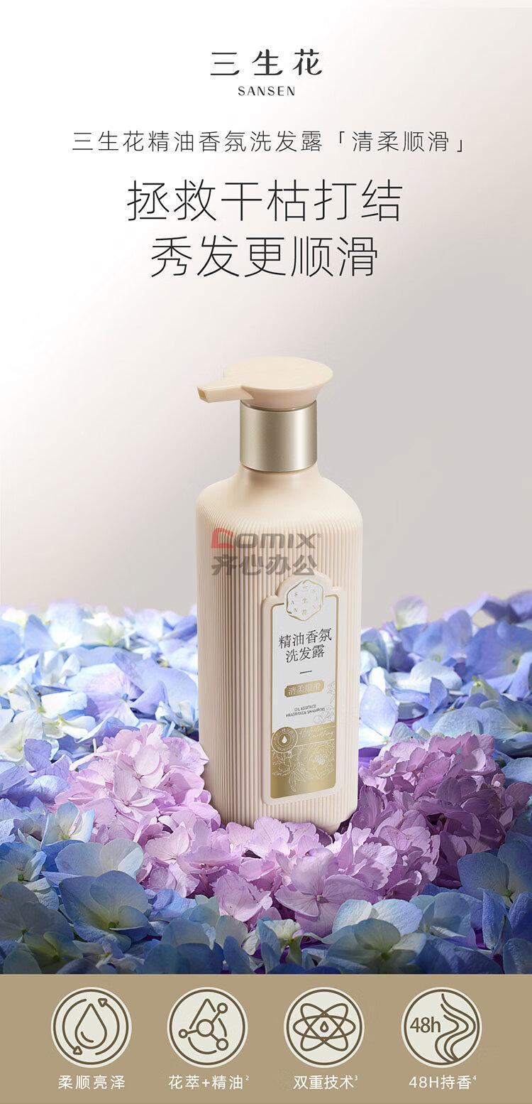 商品名称:三生花 500ml(水润顺滑)百雀羚精油香氛洗发露 单位:瓶