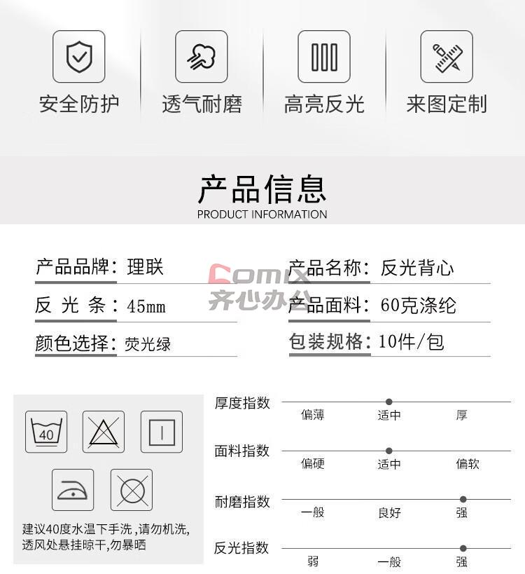 商品名称:理联 LL-BX06 反光背心 荧光绿(无口袋款) 10件装 单位:件