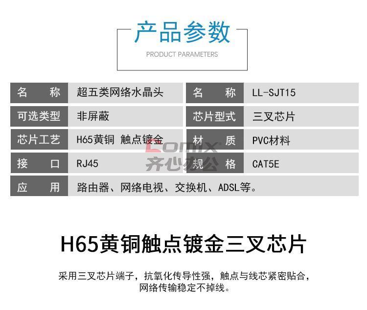 商品名称:理联 LL-SJT15 超五类非屏蔽网络水晶头 100颗/盒 单位:盒