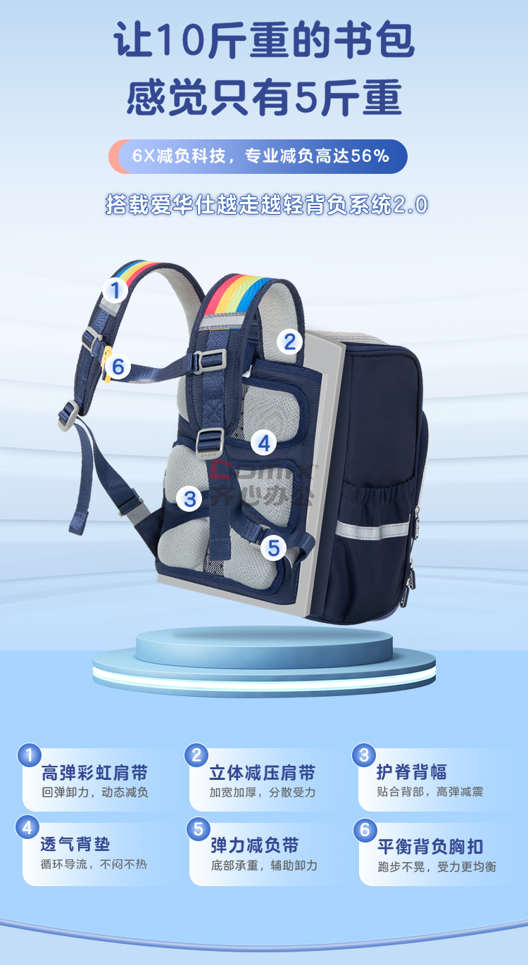 商品名称:爱华仕 OCB4441CA 书包 18L 深蓝色 单位:个
