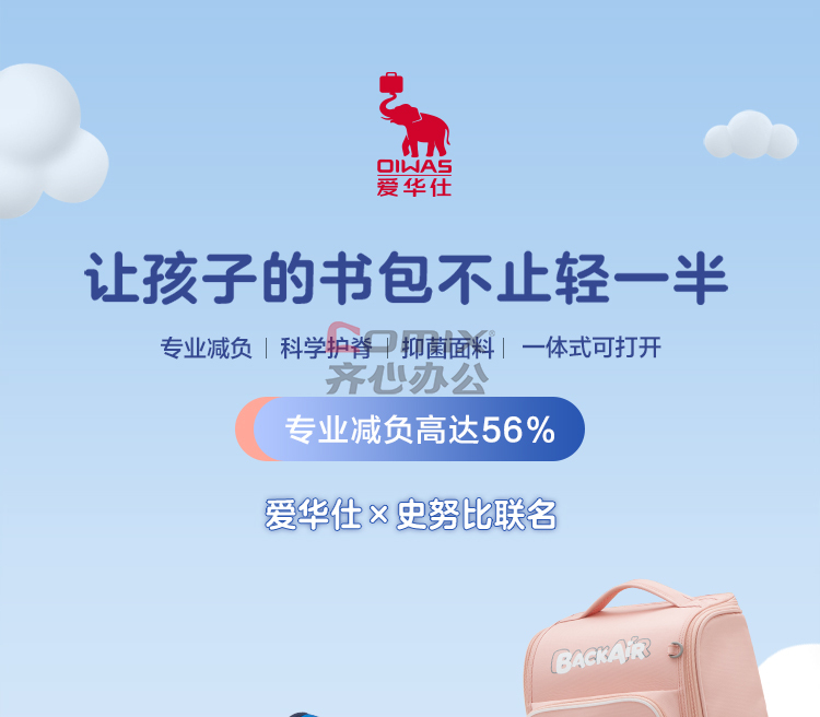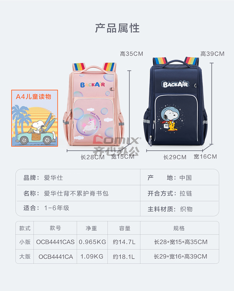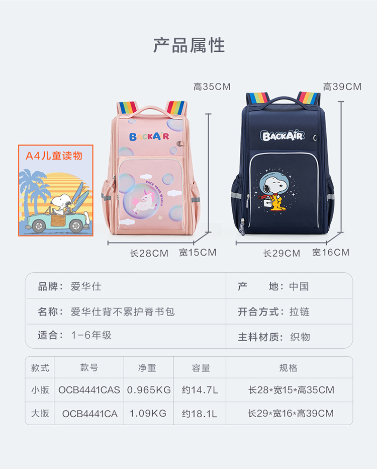 商品名称:爱华仕 OCB4441CAS小版-粉色独角兽 书包 14.7L 单位:个