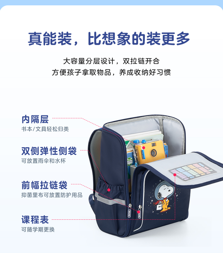 商品名称:爱华仕 OCB4441CAS小版-蓝色史努比 书包 14.7L 深蓝色 单位:个
