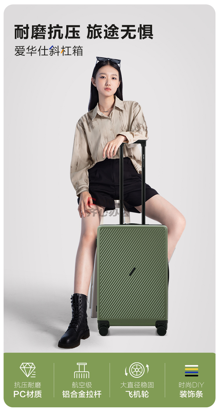 爱华仕 OCX6708 斜杆行李箱 20英寸 41.4L 黑色 单位:个