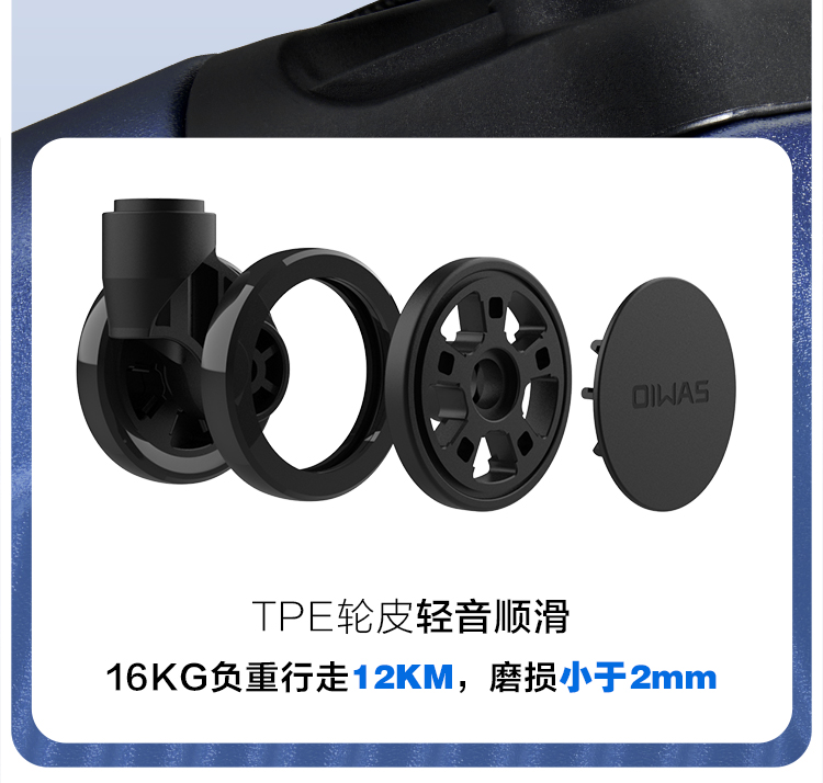 商品名称:爱华仕 OCX6708蓝色 斜杠行李箱 24英寸64.4L 单位:个