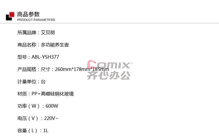 商品名称:艾贝丽-养生壶 ABL-YSH377 1L/台