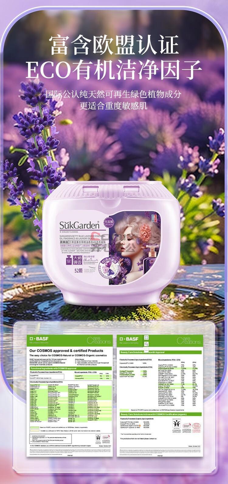 蔬果园 大师调香 贝蒂蓝薰衣草 精油香氛 4D洗衣凝珠 10g*52颗 单位:盒