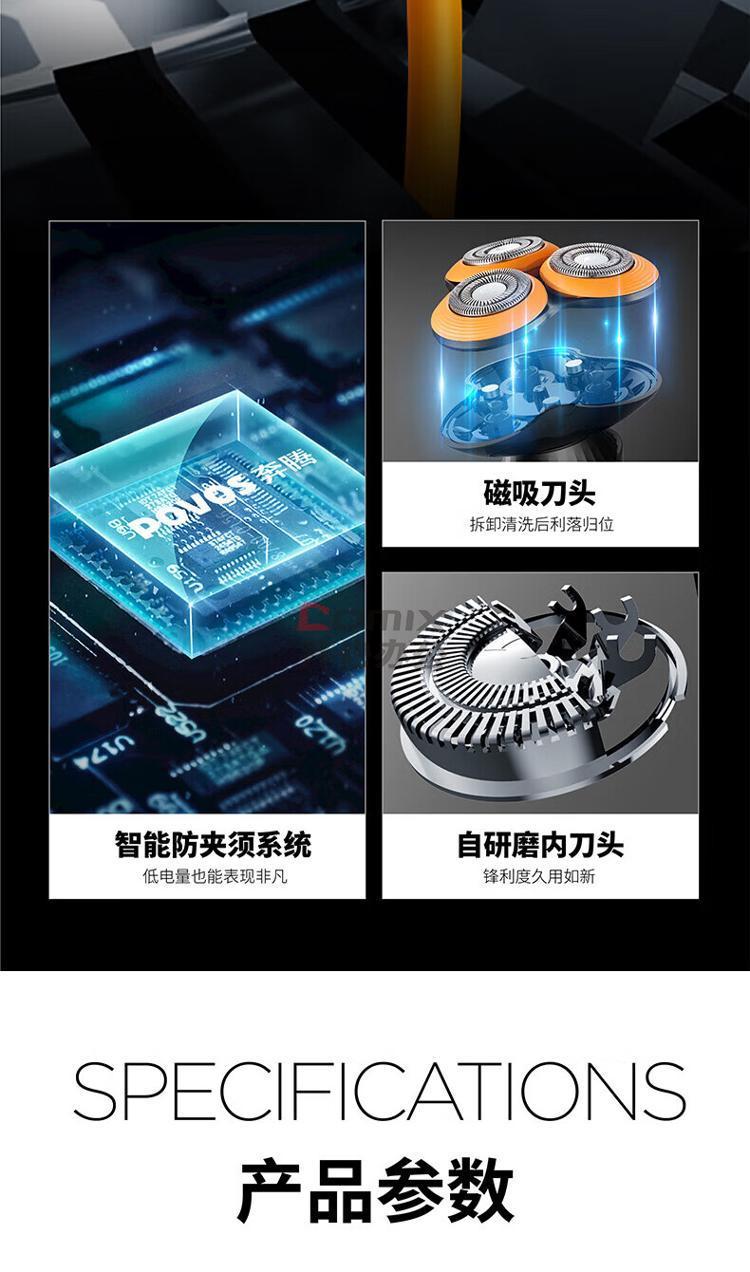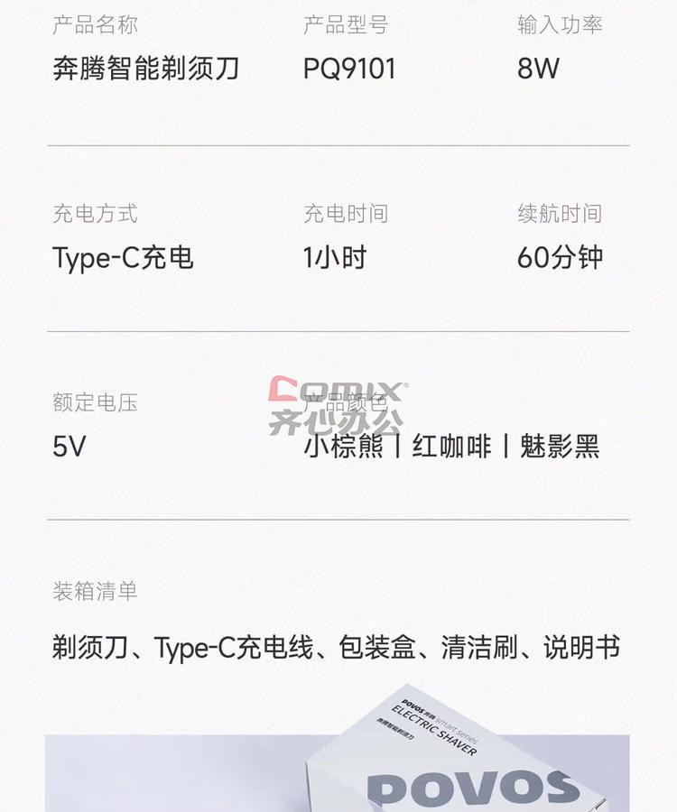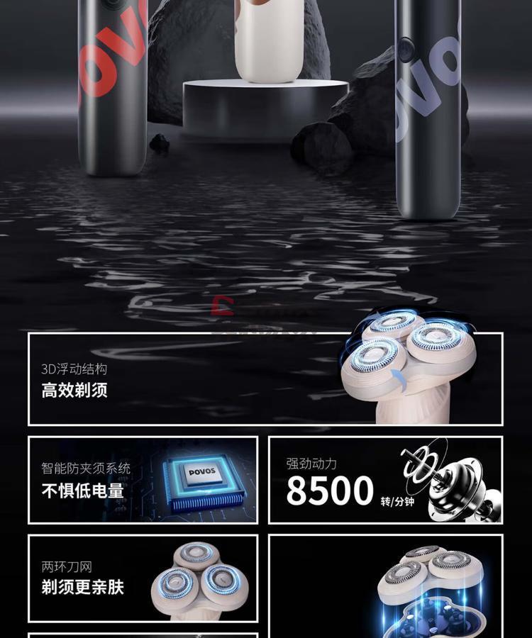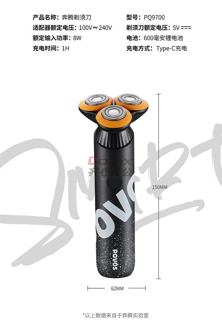 奔腾(POVOS)男士电动剃须刀时尚全身水洗胡须刀须刨PQ1000 蓝色 (单位:台)