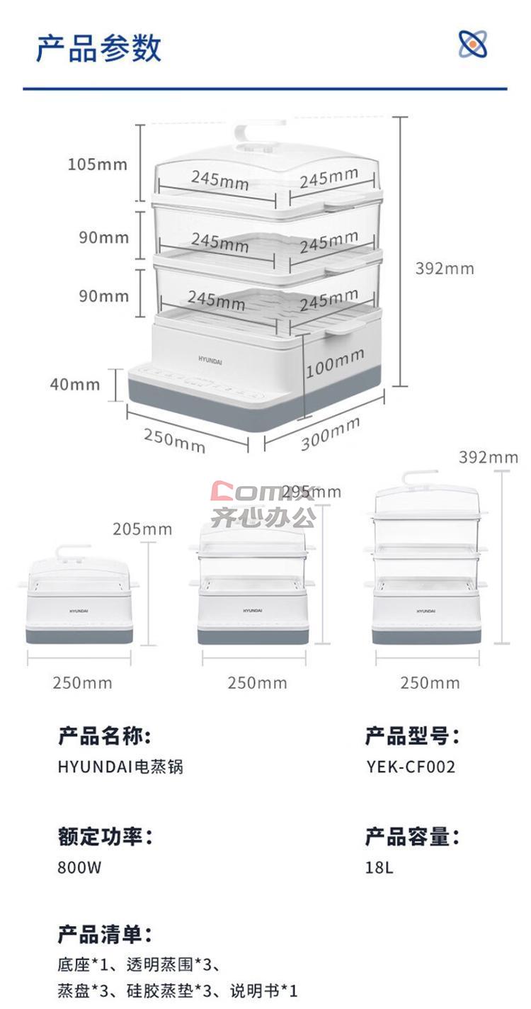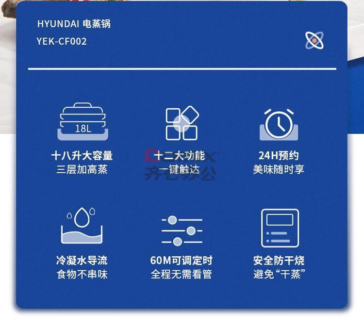 商品名称:现代 HYUNDAI YEK-CF002 电蒸锅 18L 单位:台