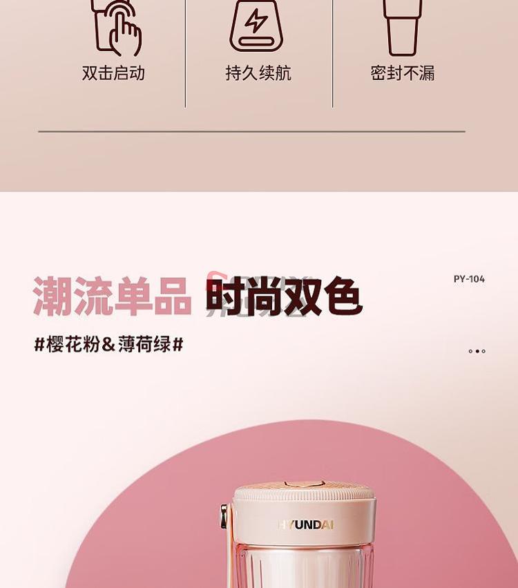商品名称:现代 HYUNDAI PY-104 薄荷绿榨汁机 300ML 单位:台