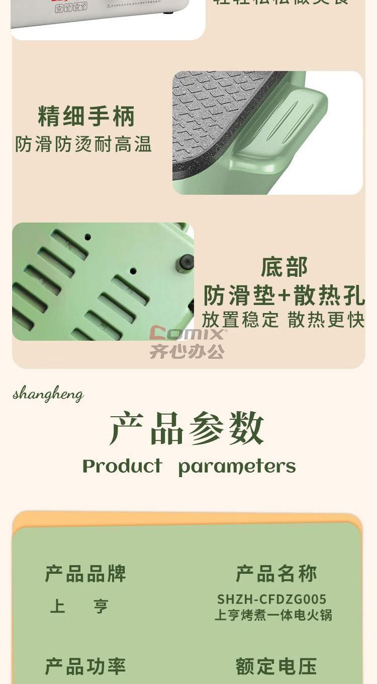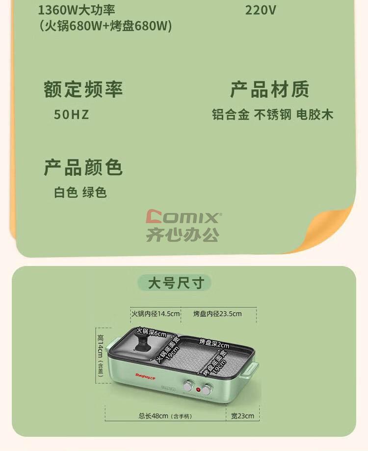 商品名称:上亨 多功能烤煮一体电火锅 SHZH-CFDZG005 绿色 单位:台