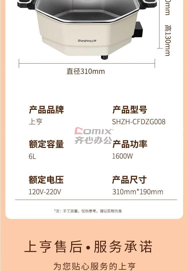 商品名称:上亨 八角电煮锅 SHZH-CFDZG008 白色 单位:台