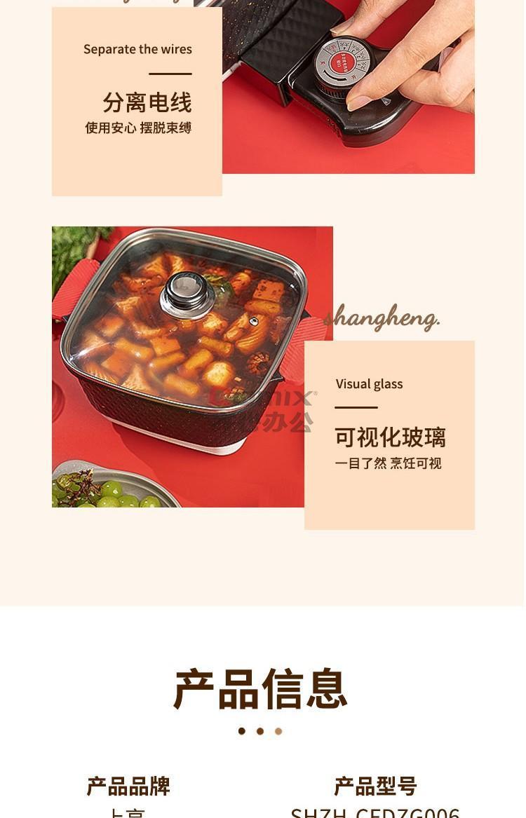 商品名称:上亨 菱形电煮锅 SHZH-CFDZG006 黑红色 单位:台