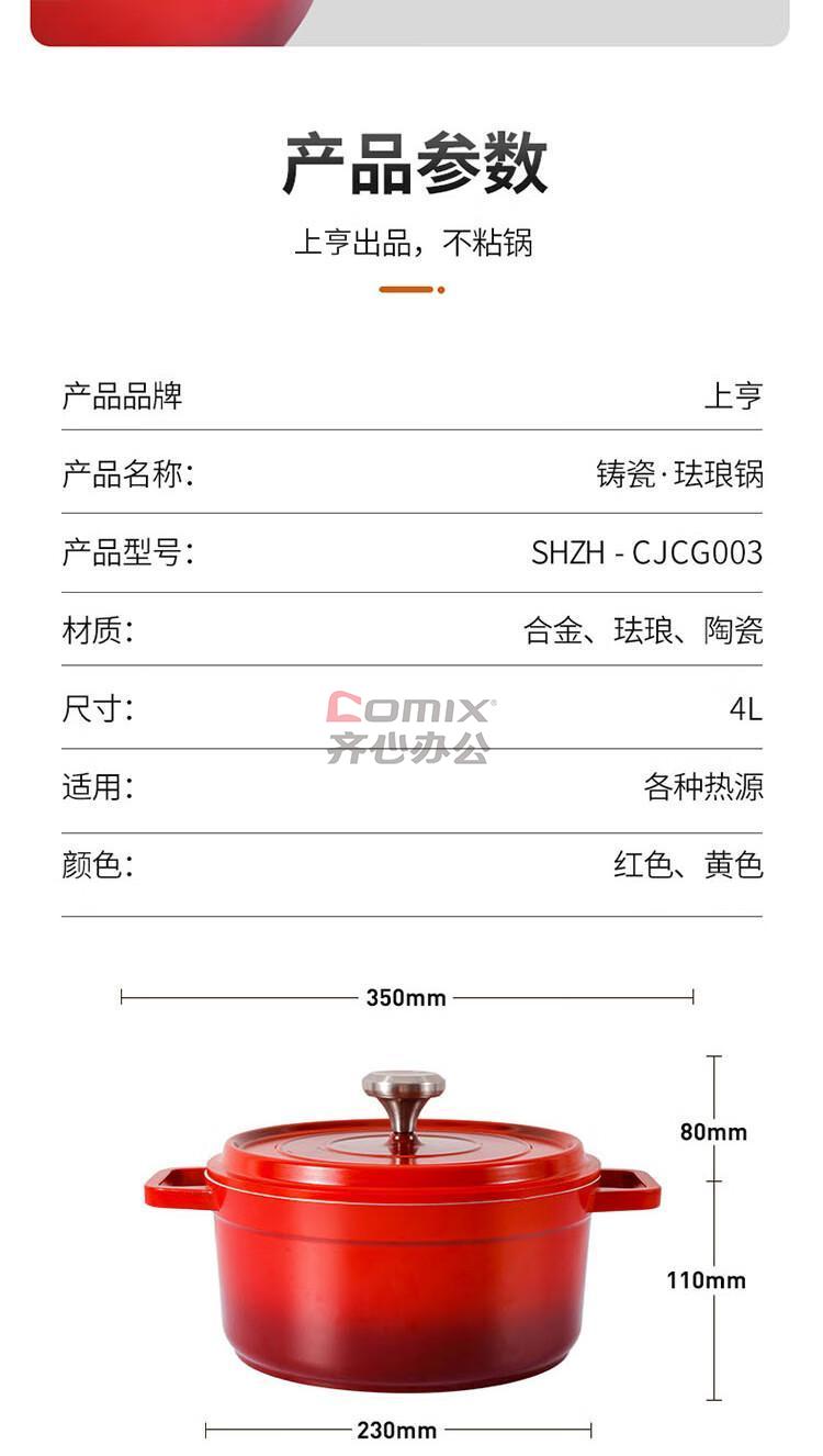 商品名称:上亨 铸瓷·珐琅锅 SHZH-CJCG003 黄色 单位:个