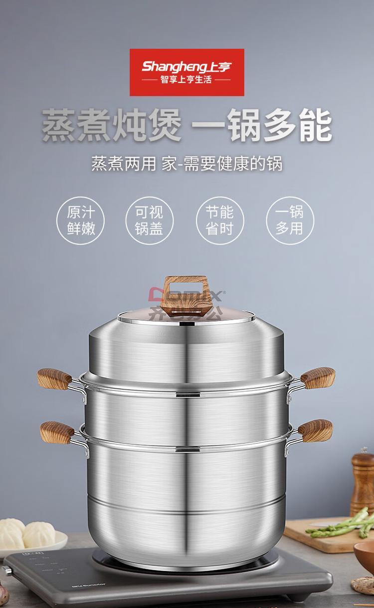 商品名称:上亨 不锈钢蒸锅两层 30CM SHZH-BXG009 锅身高:34.5cm 单位:个