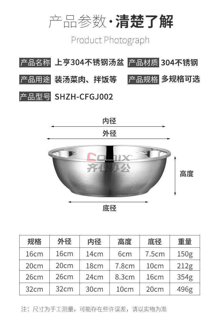 商品名称:上亨 不锈钢汤盆 SHZH-CFGJ002 20CM 单位:个