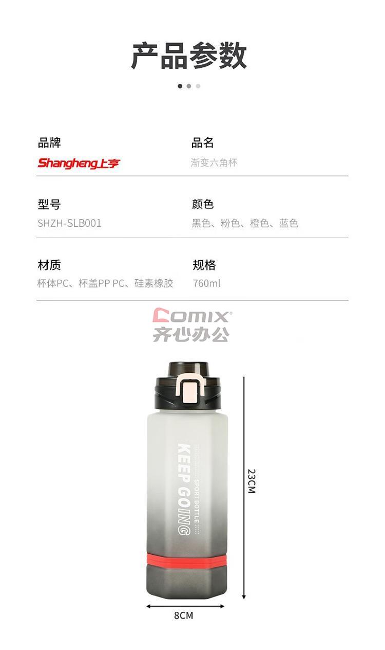 商品名称:上亨 SHZH-SLB001 运动塑料杯-760ML 黑色 单位:个
