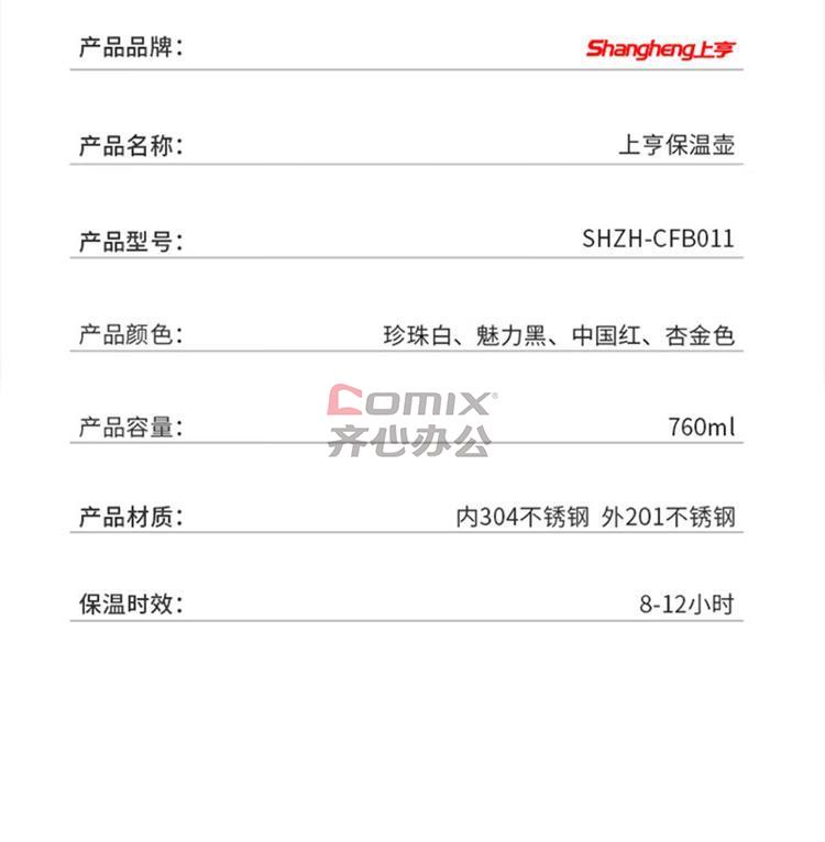 商品名称:上亨 SHZH-CFB011 保温壶-黑色 760ml 单位:个