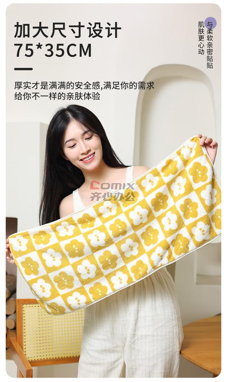 洁丽雅 W3060 A类柔软家用加厚大面巾 2条装 绿+黄 75*35cm 单位:袋