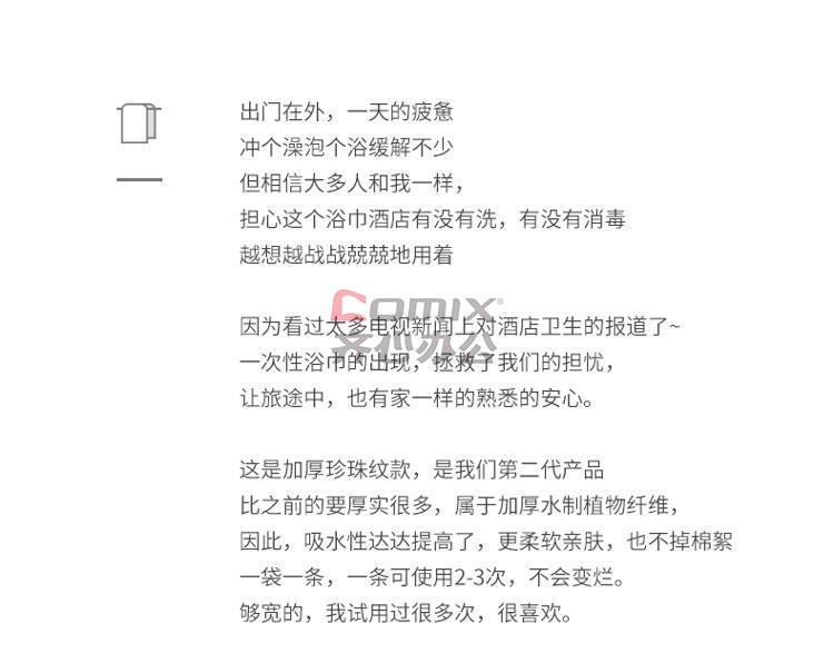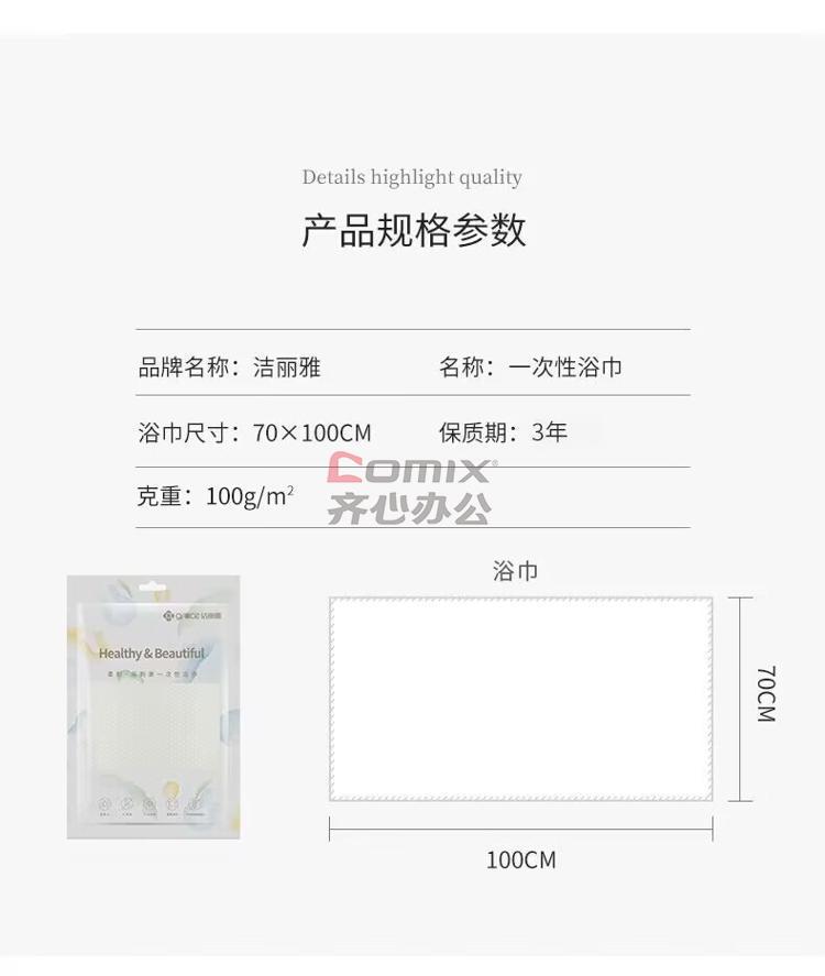 商品名称:洁丽雅 MRJ040 一次性浴巾 加厚大号珍珠纹压缩浴巾 5条装 70*100cm 单位:袋
