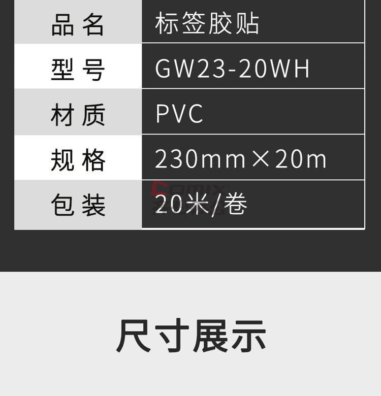 | 商品型号 | GW23-20WH 230mm*20m 20米/卷 |