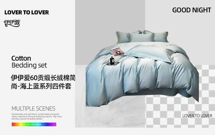 伊伊爱 TJ0KY02302040 200*230cm 贡缎60长绒棉简尚四件套 床上套件 (计价单位:套) 海上蓝