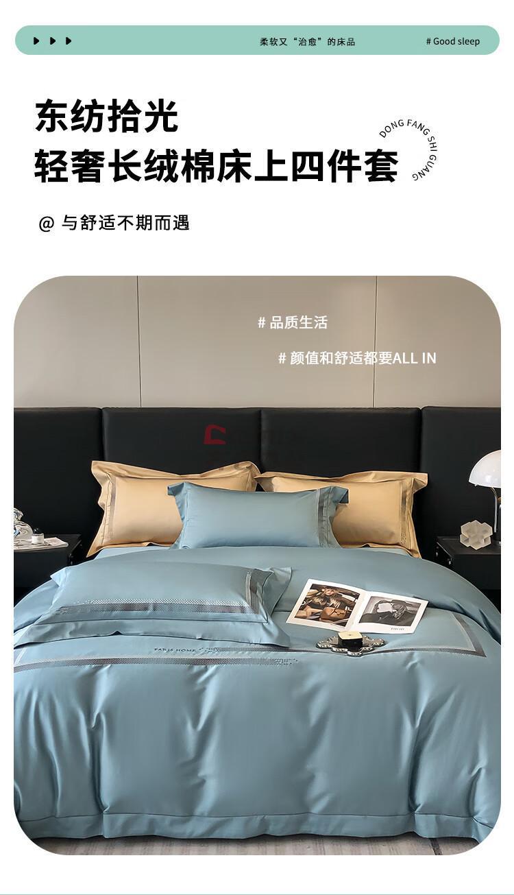 东纺拾光 DF2003-02 轻奢长绒棉床上四件套 200*230cm 苍青色 套 单位:套
