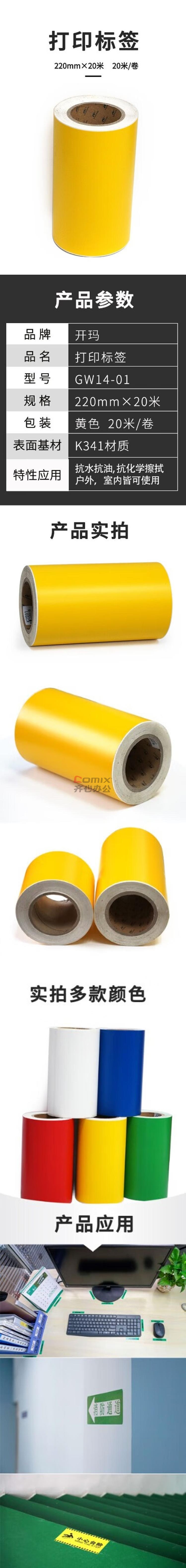 - 商品名称:开玛(k-marking) GW14-01 220mm*20m 20米/卷 打印标签 (计价单位:卷) 黄色