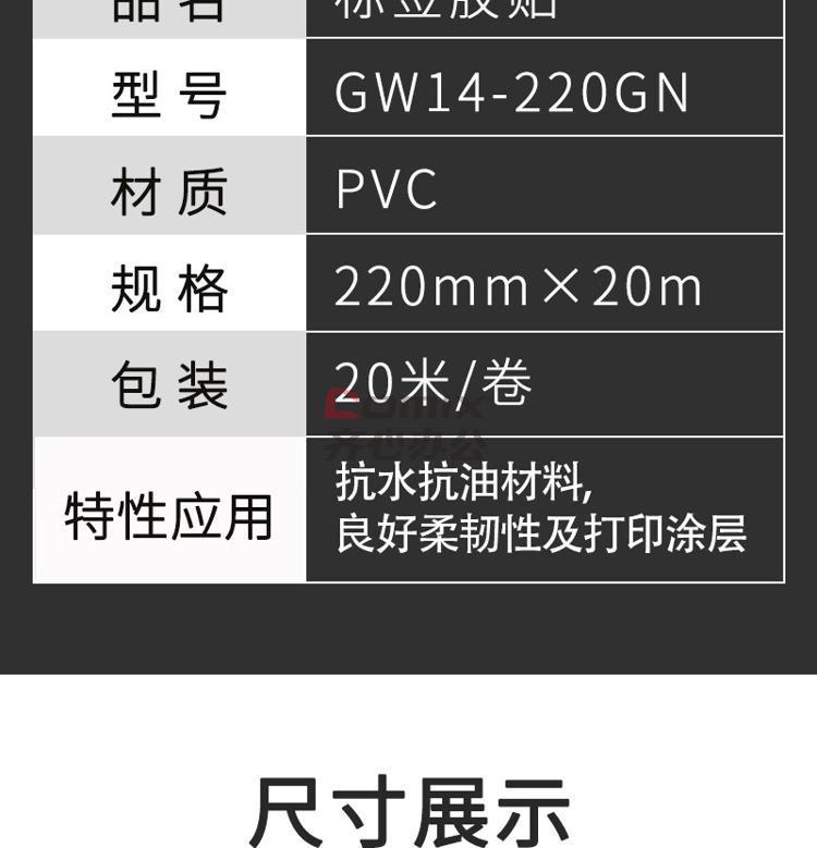 - 商品名称:开玛(k-marking) GW14-220GN 220mm*20M 标签胶贴 (计价单位:卷) 绿色