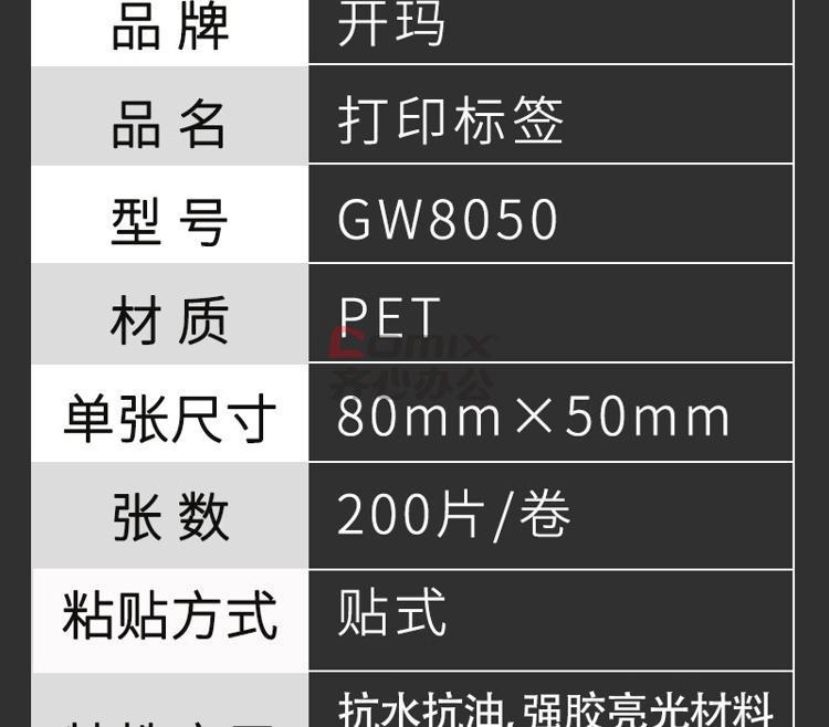 - 商品名称:开玛(k-marking) GW8050 80mm*50mm 200张/卷 打印标签 1.00 盒/卷 (计价单位:卷) 白色